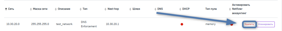 Также, в режиме редактирования маршрутизированной сети, вы можете в конце страницы нажать кнопку Клонировать. После этого подтвердите удаление.
