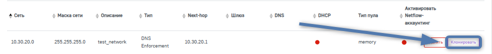 Также, в режиме редактирования маршрутизированной сети, вы можете в конце страницы нажать кнопку Клонировать.