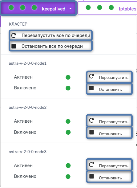 Чтобы поочередно перезапустить службы на всех узлах, нажмите на поле