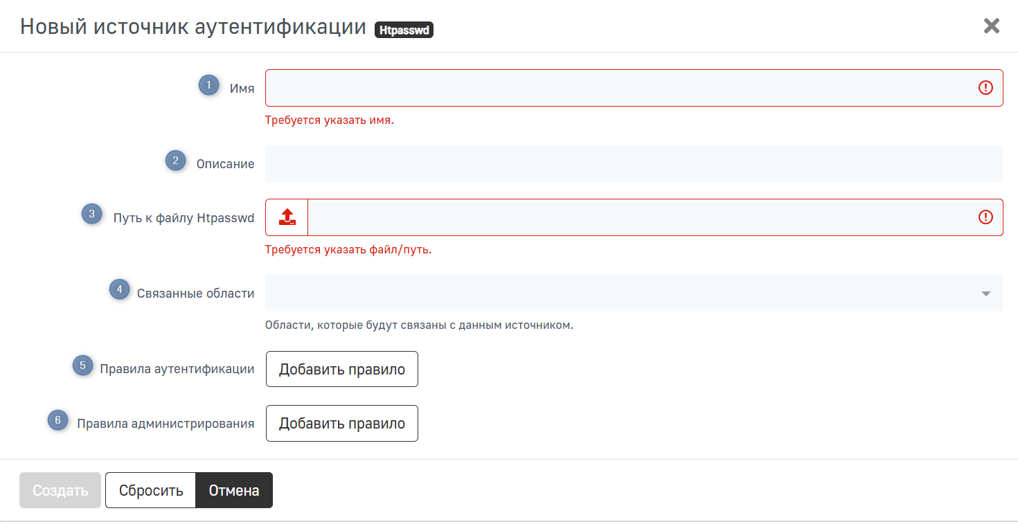Создание нового источника аутентификации Htpasswd