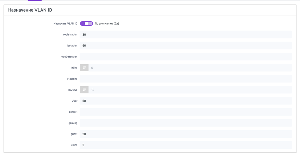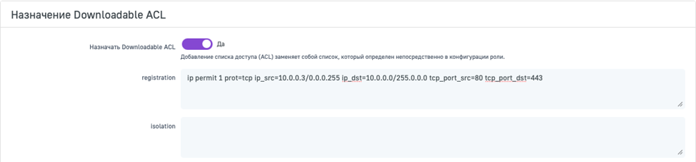 Шаг 3. Переключитесь на вкладку Роли. Настройте VLAN и RADIUS DACL (при необходимости), возвращаемые для ролей.