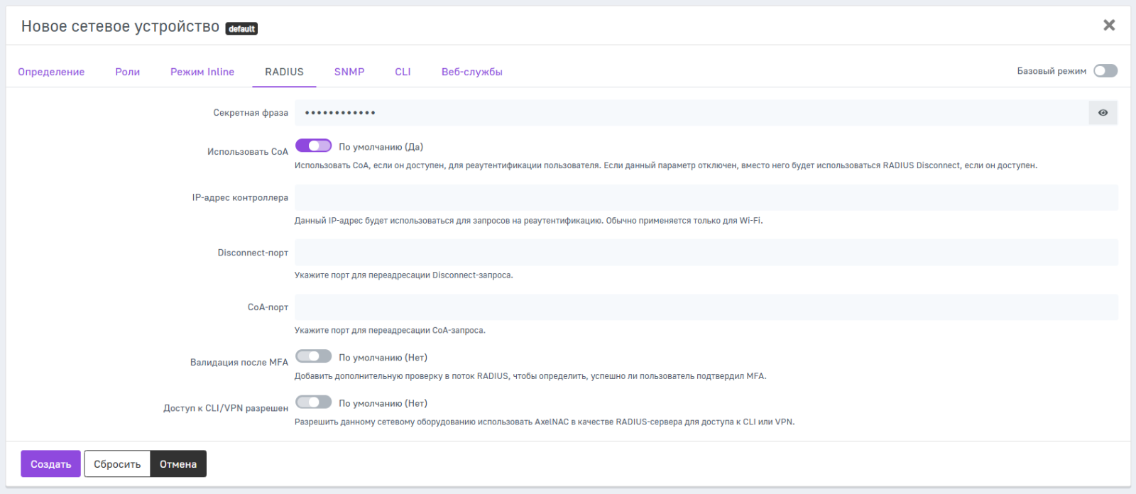 Шаг 4. В поле Метод реаутентификации из выпадающего списка выберите значение RADIUS.