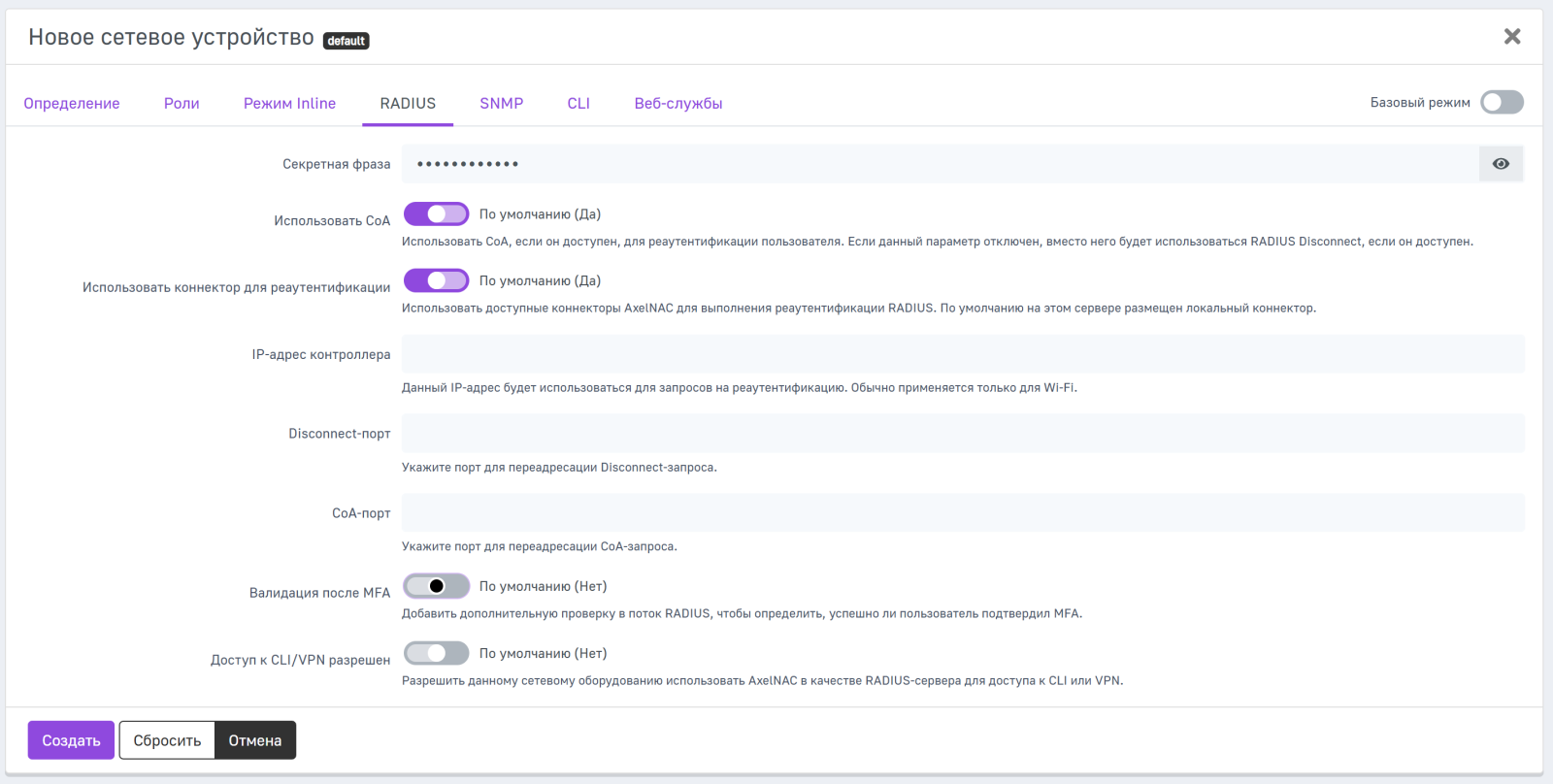Шаг 4. В поле Метод реаутентификации из выпадающего списка выберите значение RADIUS.