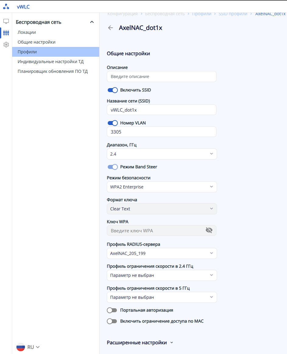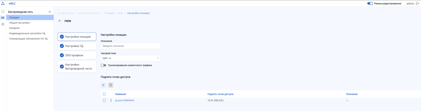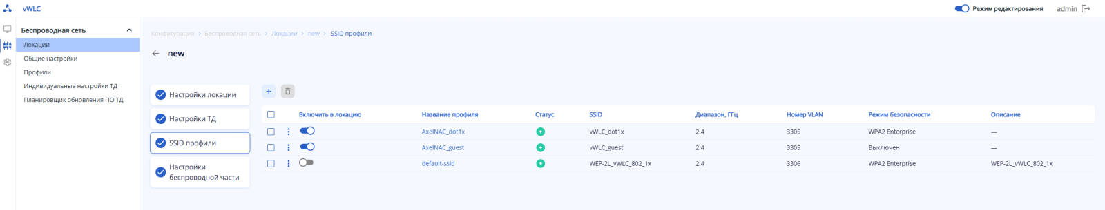 Шаг 7. Включите в локации необходимые SSID как показано на скриншоте: