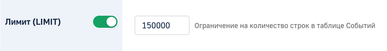 Для этого выберите атрибут по которому будут сортироваться события, затем выберите порядок сортировки. Лимит (LIMIT)Данный блок используется для конфигурации ограничения на количество событий в таблице.