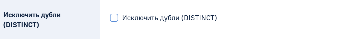 Исключить дубли (DISTINCT)Данный блок используется для удаления одинаковых записей в таблице.