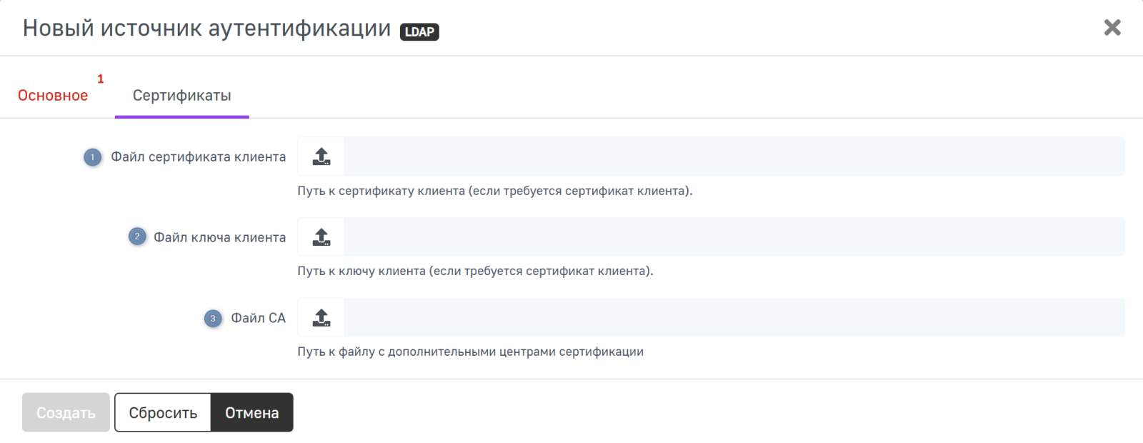 На данной вкладке можно указать основные настройки источника аутентификации.