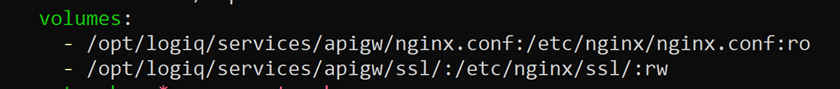 Шаг 1. Подключитесь к серверу системы по протоколу SSH и проверьте, что разделы с сертификатами примонтированы к контейнеру logiq-apigw-1 в файле docker-compose.services.yml: