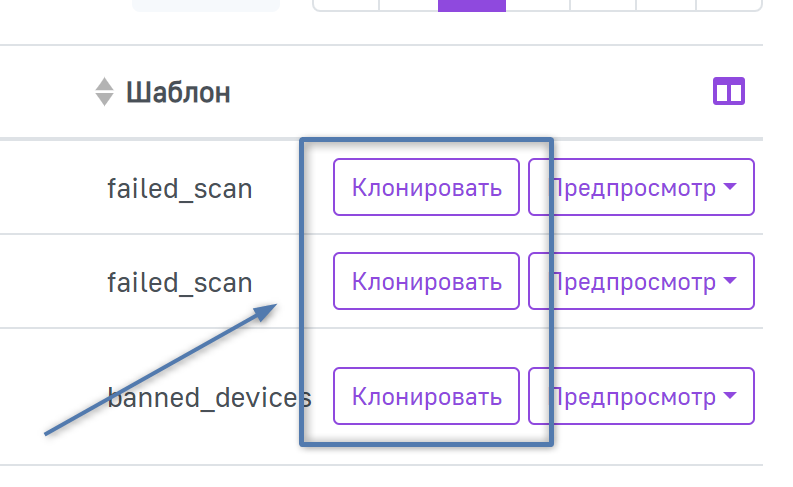 Для того, чтобы клонировать событие безопасности, нажмите Клонировать в правой части таблицы. После этого откроется окно конфигурации нового события безопасности.