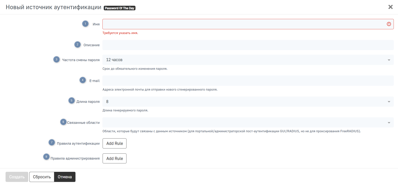 Создание нового источника аутентификации Password Of The Day