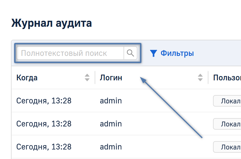 Для просмотра истории действий пользователей в Системе, необходимо перейти на страницу Настройки → Журнал аудита.