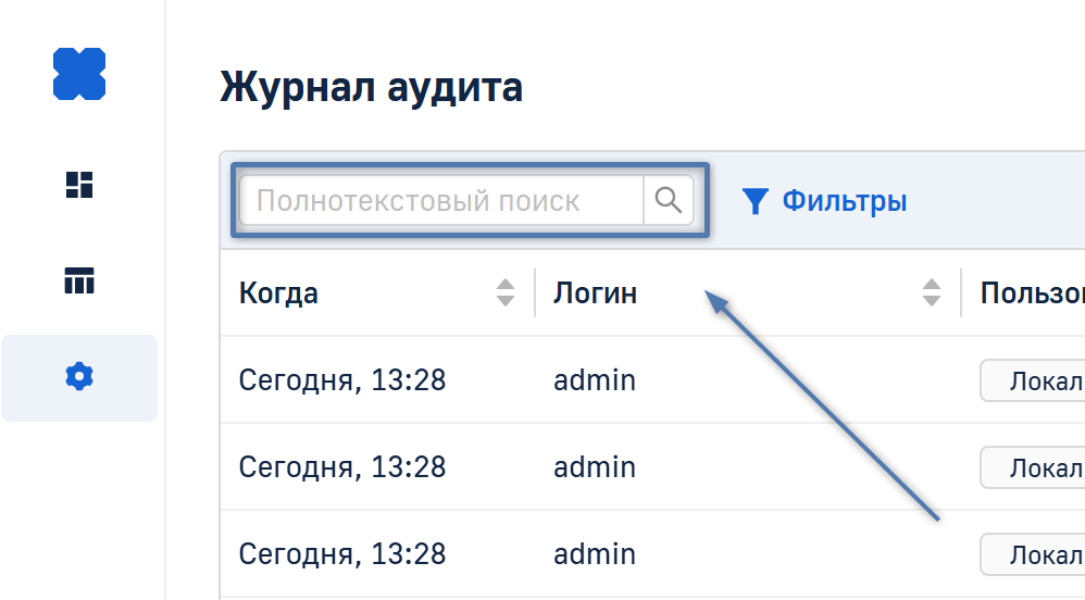 Для просмотра истории действий пользователей в Системе, необходимо перейти на страницу Настройки → Журнал аудита.