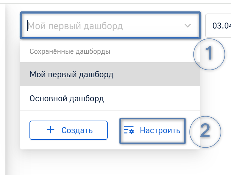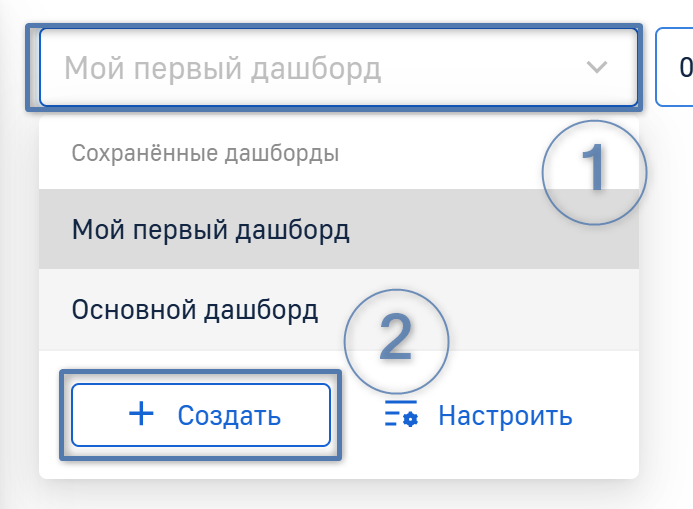 Создание дашбордаДля того, чтобы создать новый дашборд, нажмите на поле выбора дашборда, и в выпадающем списке выберите Создать.
