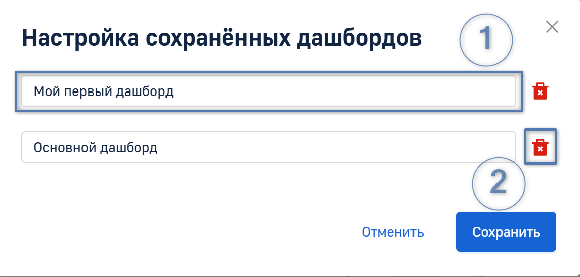 В открывшемся модальном окне вы можете изменить имя вашего дашборда или удалить его.