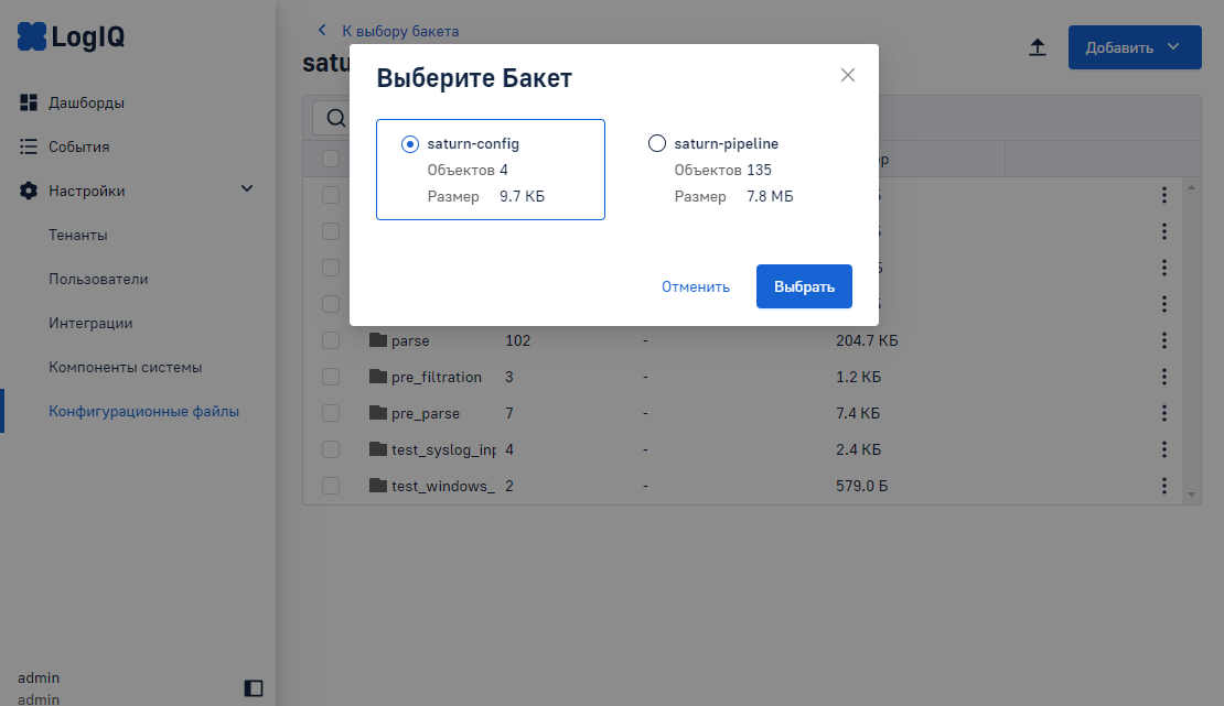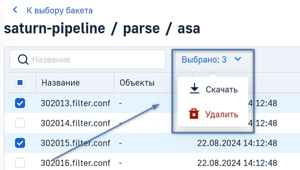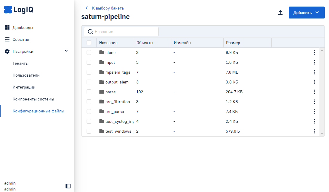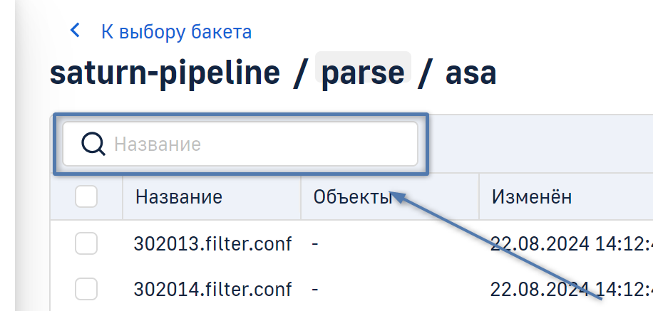 - saturn-pipeline — в данном бакете хранятся сконвертированные правила корреляции и нормализации для блока Saturn.