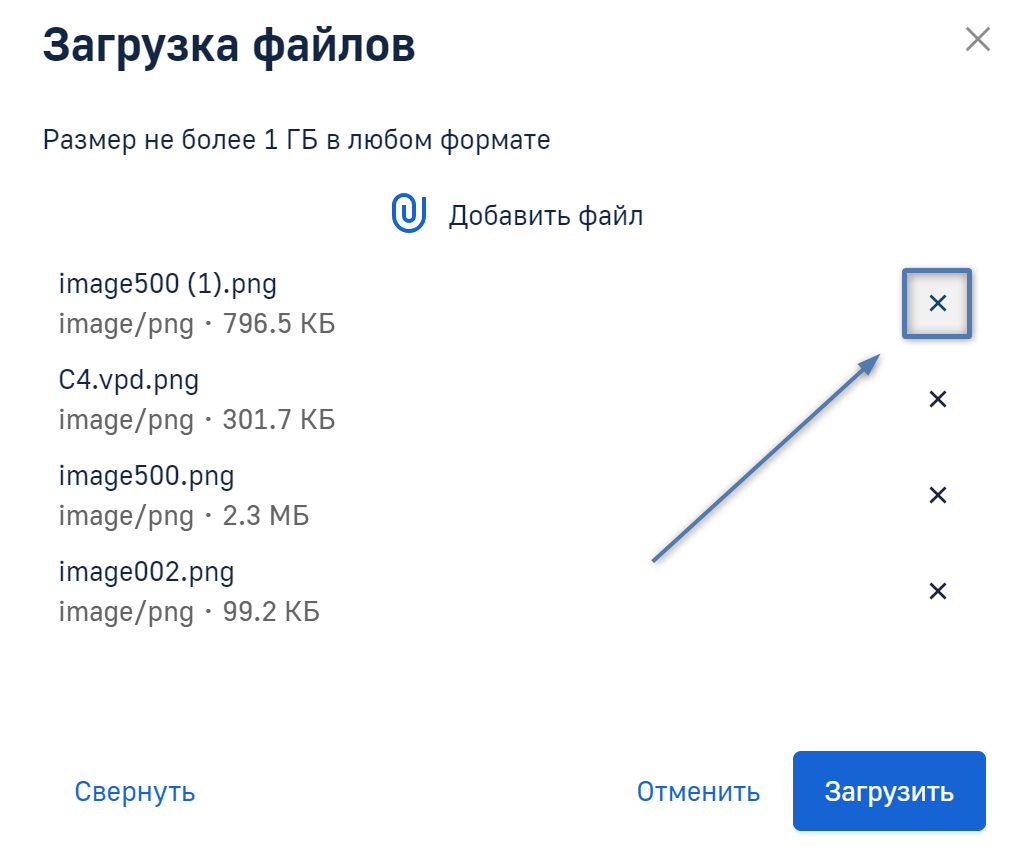 Если вы случайно добавили лишние файлы, нажмите на иконку креста справа от имени файла: