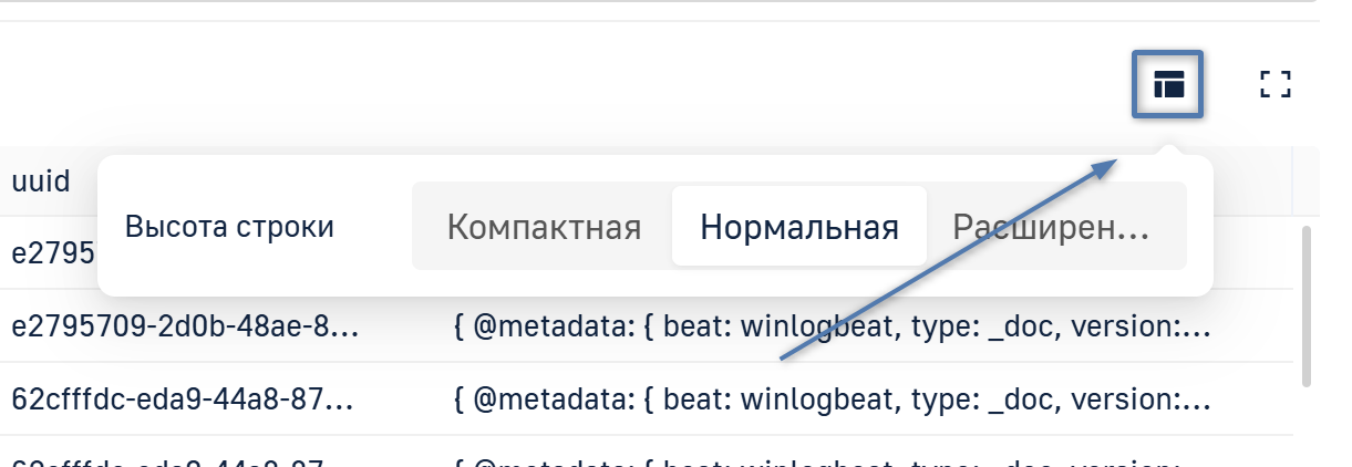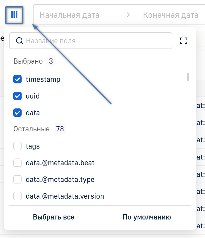 Конфигурация отображения таблицыВы можете сконфигурировать отображение таблицы событий. Для этого нажмите на иконку шестеренки в правом верхнем углу таблицы: