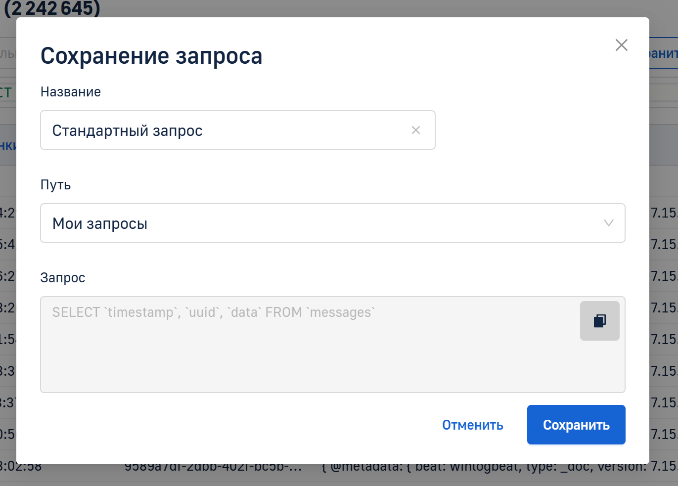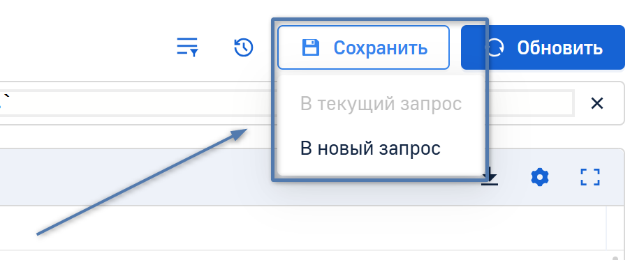 Вы можете экспортировать не более 1 миллиона событий за раз. Сохраненные запросыСохранение запросовДля удобства ежедневного использования вы можете сохранить ваши запросы. Для этого нажмите Сохранить в правом верхнем углу страницы, затем в выпадающем меню выберите вариант сохранения — в текущий запрос, или в новый.