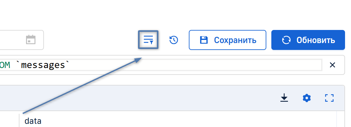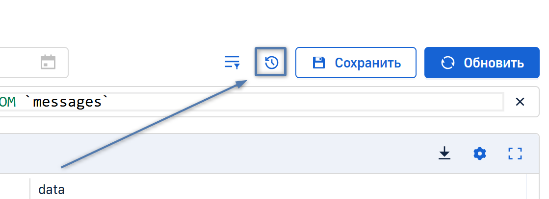 Просмотр истории запросовДля того, чтобы повторить один из ранее использованных запросов, вы можете воспользоваться историей запросов. Для этого нажмите на иконку истории и выберите интересующий вас запрос в правом сайдбаре.