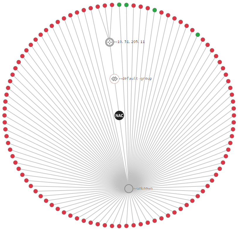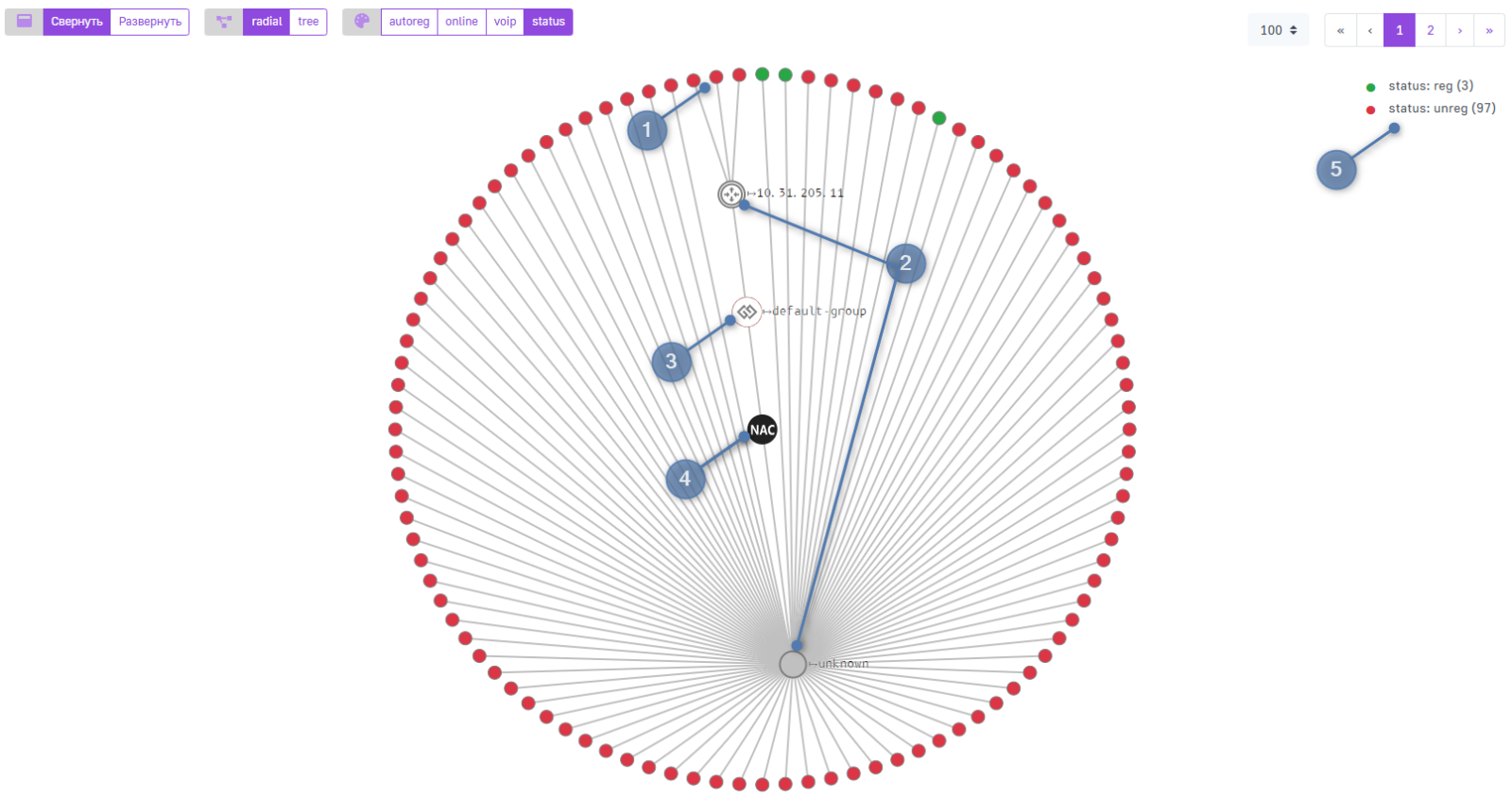 •  radial — отображает узлы радиально вокруг NAC;