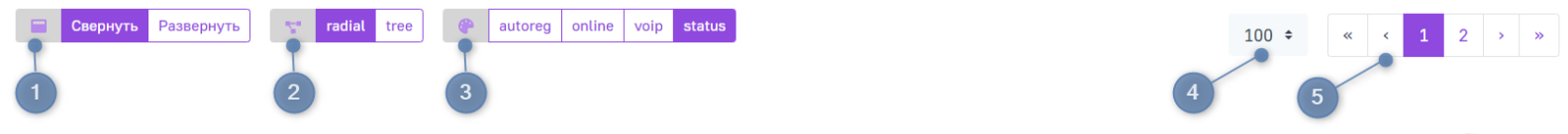 4. Количество отображаемых узлов — по умолчанию на диаграмме отображаются 100 узлов, однако вы можете выбрать отображение 10, 25, 50, 100 и 250 узлов на странице. Для этого нажмите на поле  .