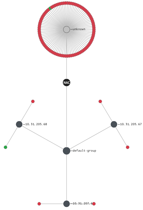 На диаграмме отображается физический или логический путь соединения между NAC и отфильтрованными устройствами.