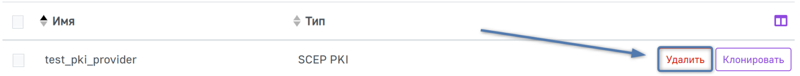 Для того чтобы удалить PKI-провайдер, нажмите Удалить. После этого подтвердите удаление.