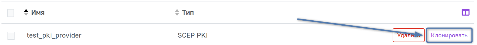 Также вы можете нажать на строку с PKI-провайдером и в конце страницы нажать кнопку Клонировать.