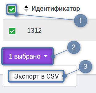 На данный момент единственное доступное групповое действие в системе — Экспорт в CSV. При его выборе, файл в формате .csv, содержащий записи таблицы, попадает в менеджер загрузки вашего браузера.