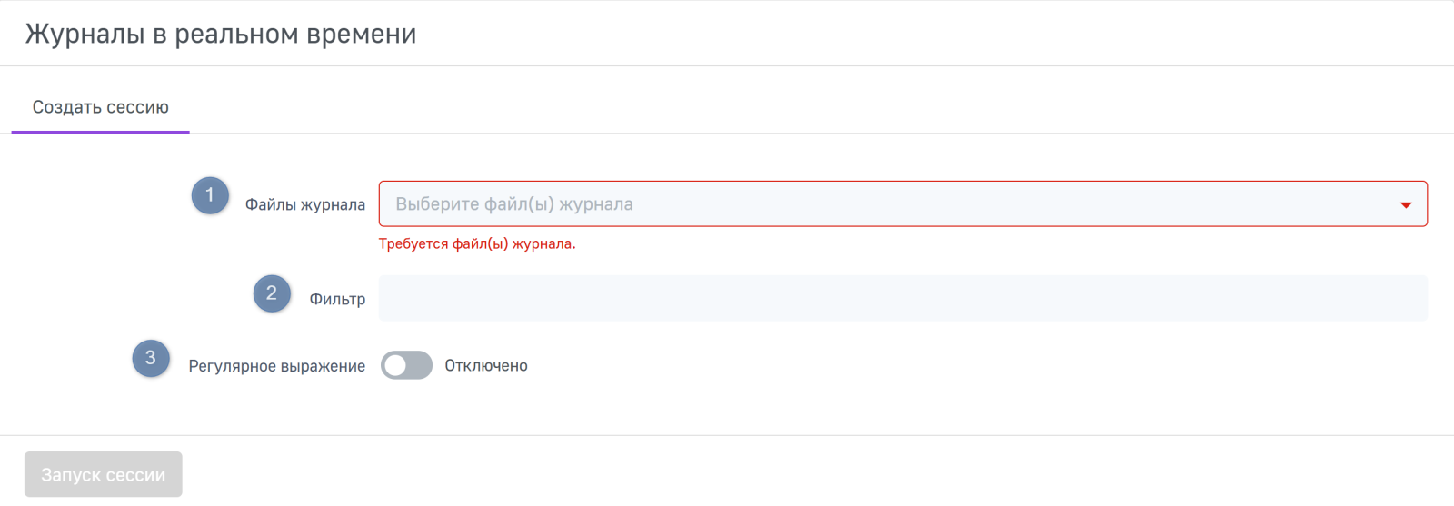 Вкладка «Создать сессию»