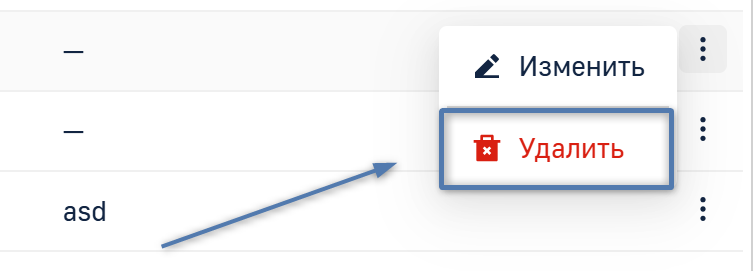 • Нажмите на три точки справа от тенанта в списке, после чего выберите в выпадающем списке Удалить.