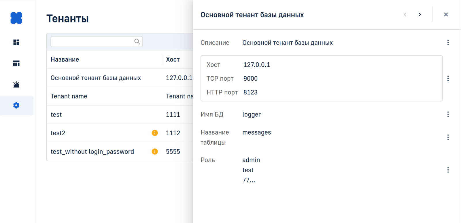 Для управления списком тенантов необходимо перейти на страницу Настройки → Тенанты.