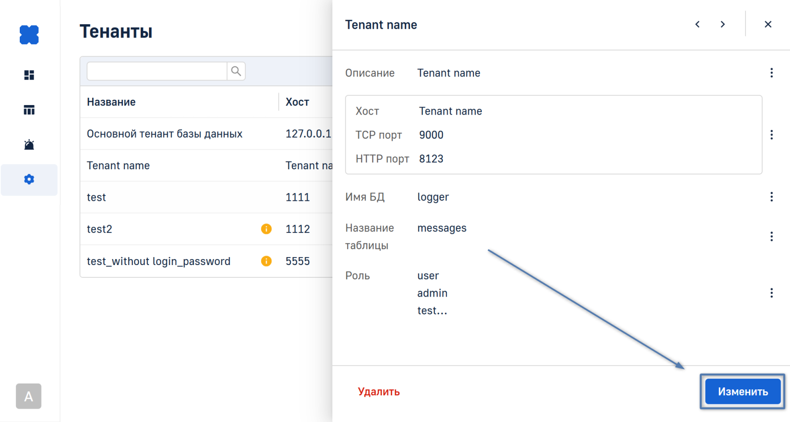 Для того, чтобы отредактировать ранее добавленный тенант: