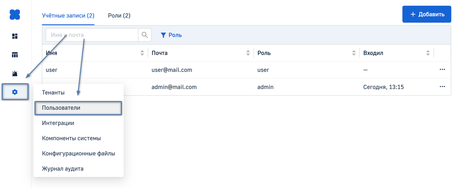 Для управления учетными записями пользователей необходимо перейти на страницу Настройки → Пользователи.
