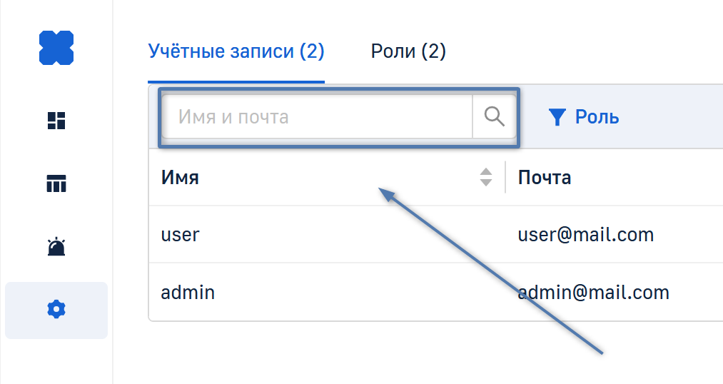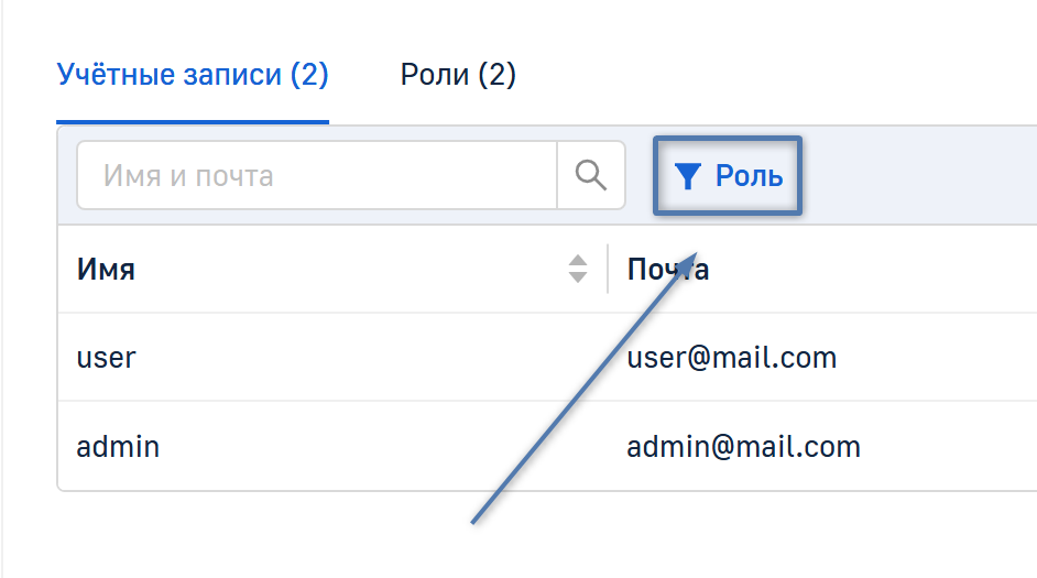 Вы также можете отфильтровать список пользователей по выданным им ролям. Для этого нажмите на иконку фильтра и выберите роль для фильтрации списка.
