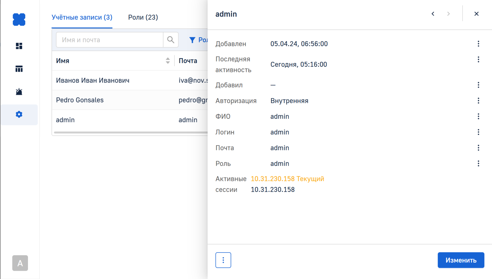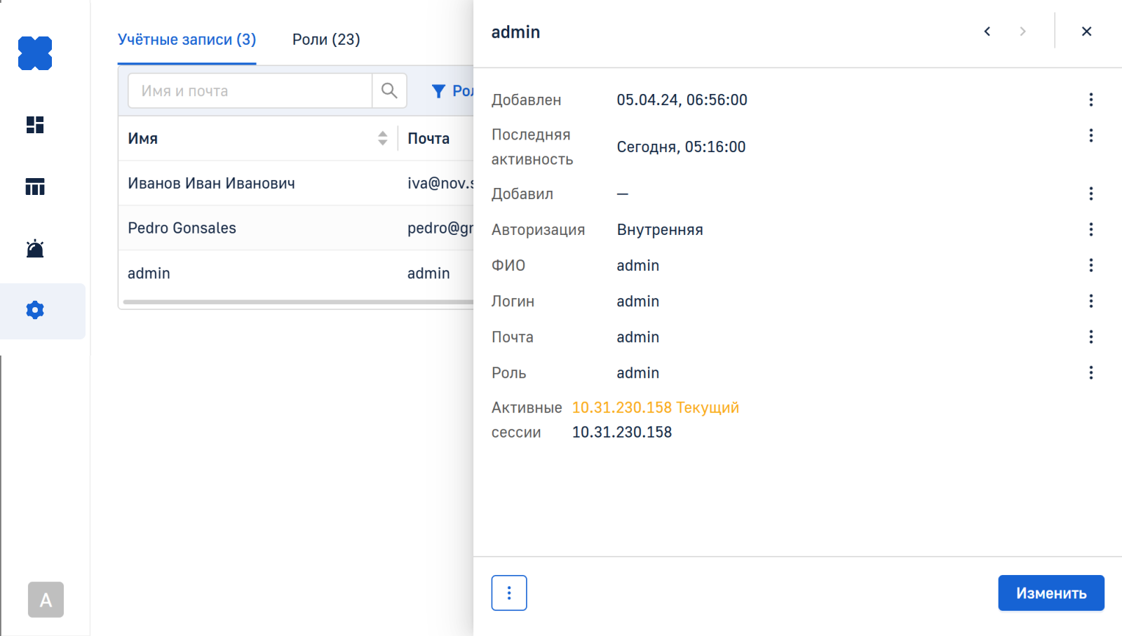 При нажатии будет открыта страница редактирования пользователя. Чтобы сохранить изменения, нажмите кнопку Сохранить в левом нижнем углу страницы. После этого вы будете автоматически перенаправлены на страницу со списком всех добавленных пользователей. Нажмите кнопку Отменить, чтобы сбросить все внесенные изменения. Блокировка и разблокировка пользователяБлокировка пользователя позволяет запретить пользователю доступ к системе, не удаляя его полностью. Для того, чтобы заблокировать пользователя: