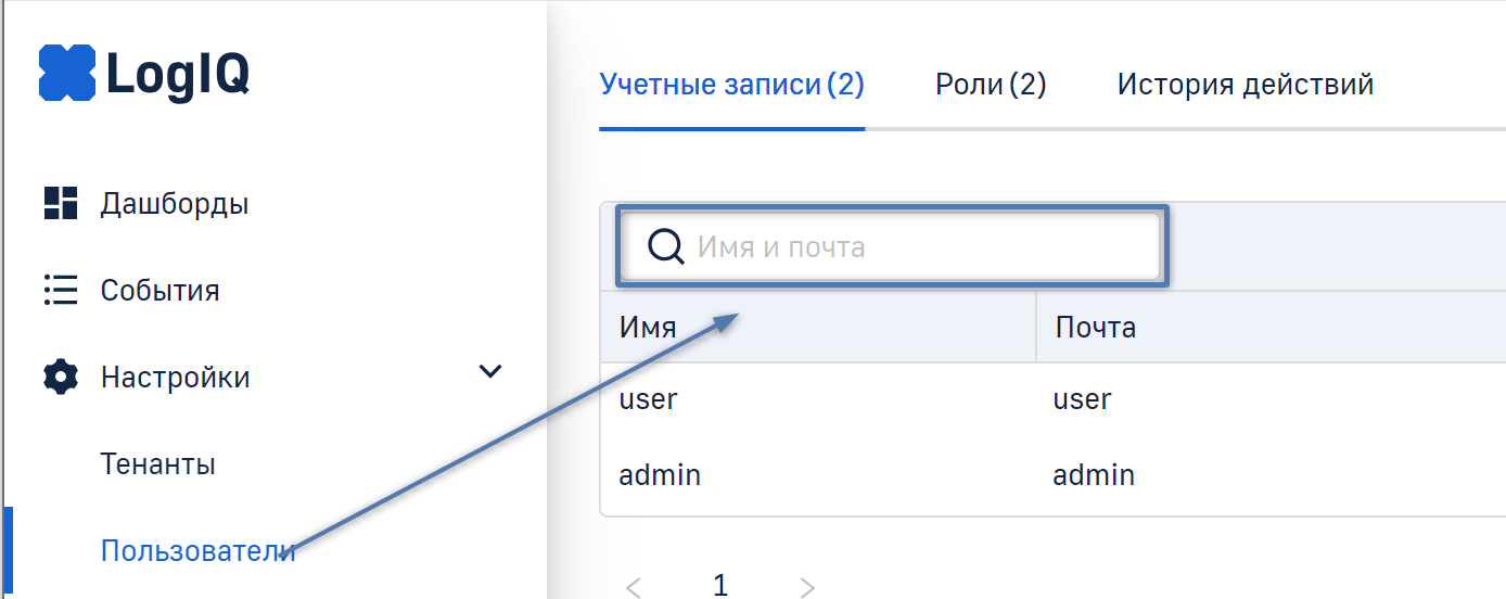Чтобы создать пользователя, нажмите кнопку Добавить в правом нижнем углу окна. После этого вы будете автоматически перенаправлены на страницу со списком всех добавленных пользователей. Если вы передумали добавлять пользователя, нажмите кнопку Отменить. Поиск пользователяДля того, чтобы найти определенного пользователя в списке, нажмите на форму поиска в левом верхнем углу таблицы и введите ключевое слово.