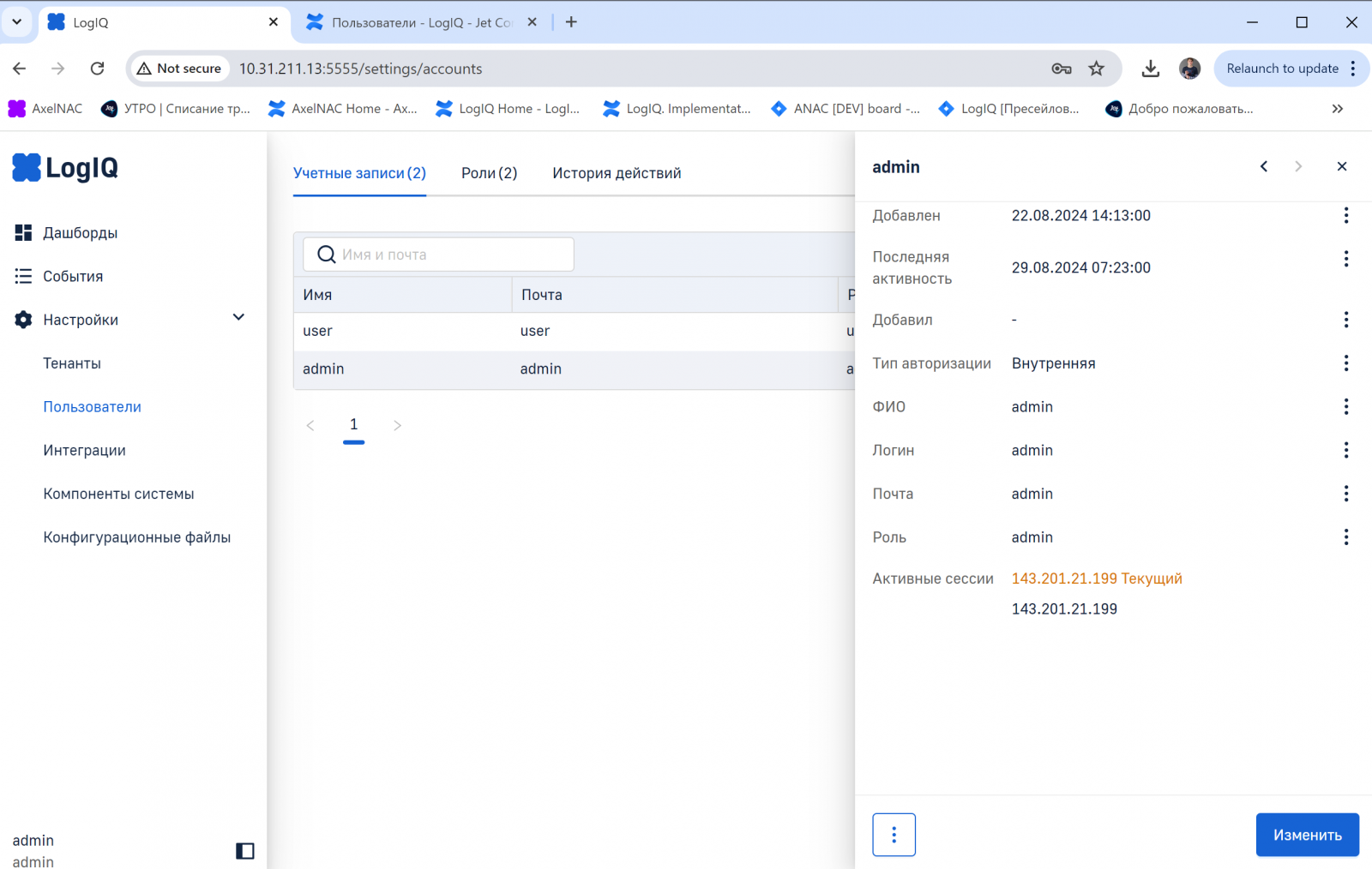 Для управления учетными записями пользователей необходимо перейти на страницу Настройки → Пользователи.