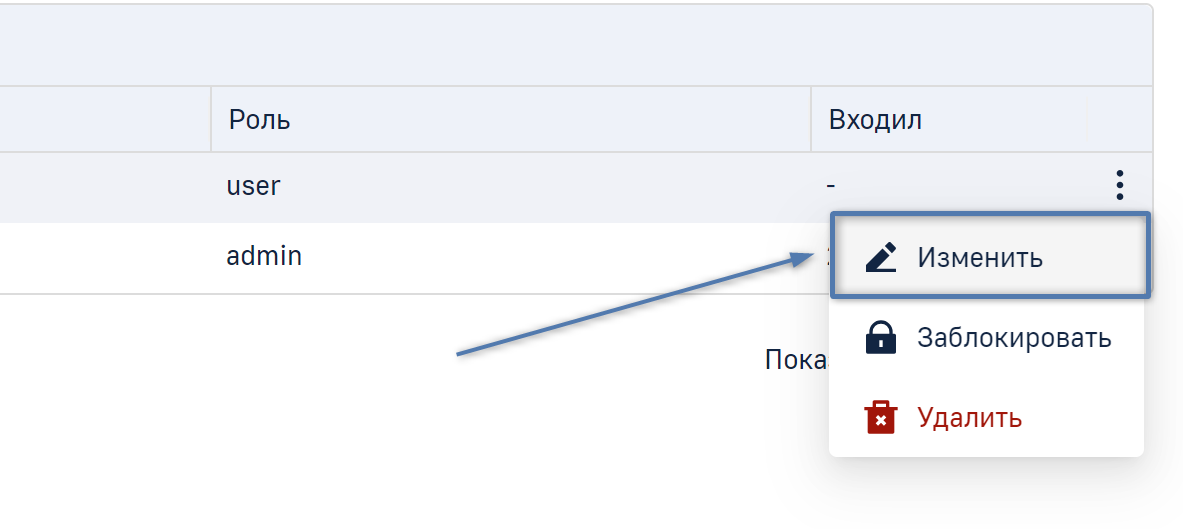 Для того, чтобы скопировать содержимое поля, нажмите на три точки справа от поля и выберите в выпадающем списке Скопировать. Редактирование пользователяДля того, чтобы отредактировать ранее добавленного пользователя: