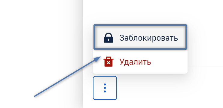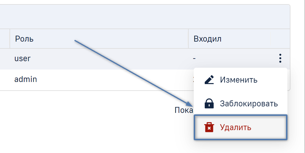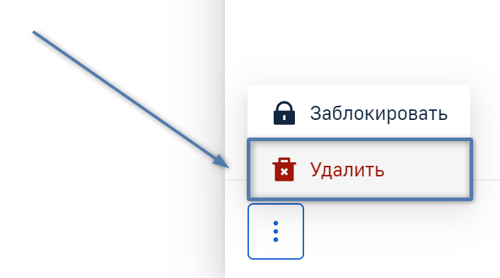 После этого, во всплывающем окне нажмите кнопку Заблокировать для подтверждения блокировки. Если вы передумали блокировать пользователя, нажмите кнопку Отменить. Для снятия блокировки с пользователя повторите эти действия, выбрав в выпадающем списке Разблокировать. После подтверждения, пользователю будет возвращен доступ к Системе. Удаление пользователяДля того, чтобы удалить пользователя: