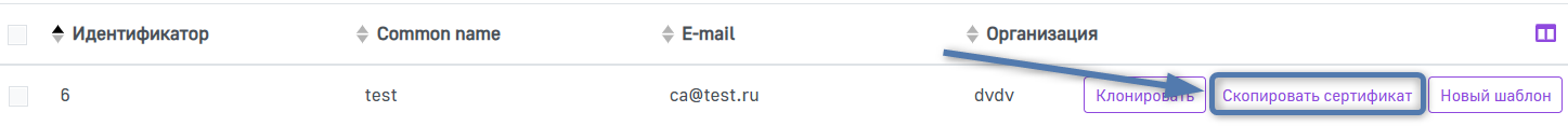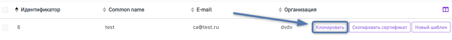Также в режиме редактирования центра сертификации вы можете в конце страницы нажать кнопку Клонировать.