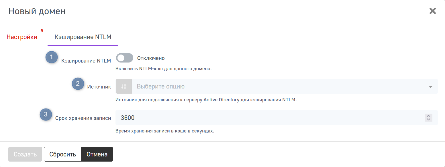 - Кэширование NTLM — включить NTLM-кэш для данного домена;