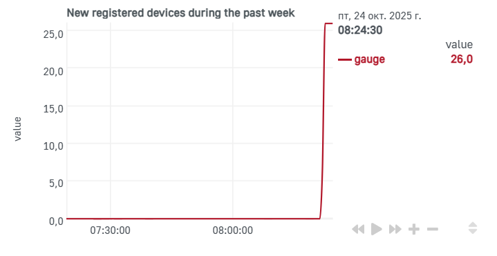 • gauge — количество зарегистрированных устройств за последнюю неделю.