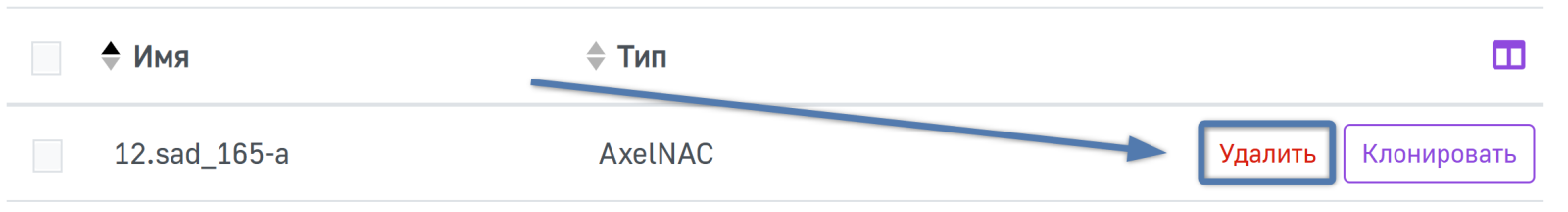 Вы можете отсортировать таблицу по Имени, Типу в порядке алфавитного возрастания или убывания с помощью иконки . По умолчанию все записи в таблице отображаются в порядке алфавитного возрастания по Имени.