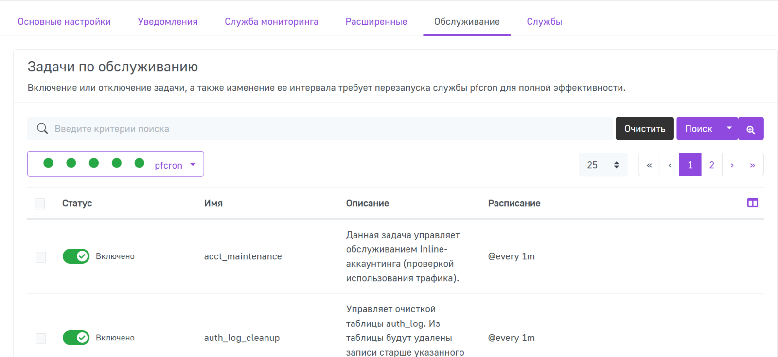 Служба pfcron отвечает за применение изменений статуса задачи по обслуживанию.