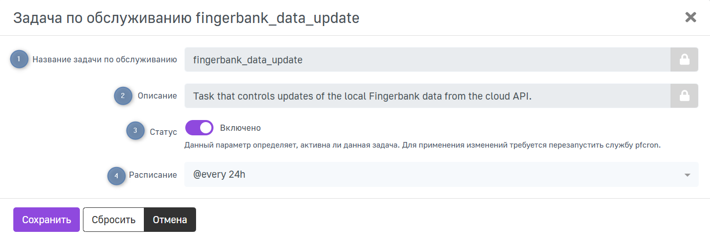Данная задача управляет обновлением локальных данных хранилища отпечатков из облачного API.