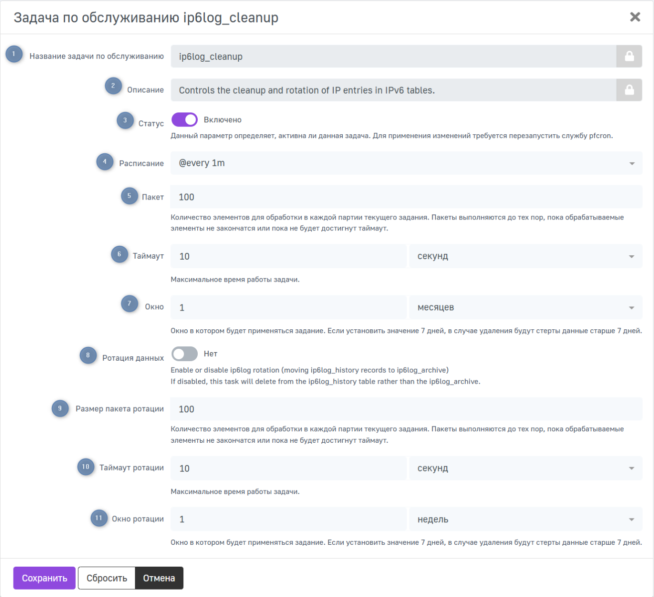 Данная задача управляет очисткой и ротацией записей IP-адресов в IPv6-таблицах.