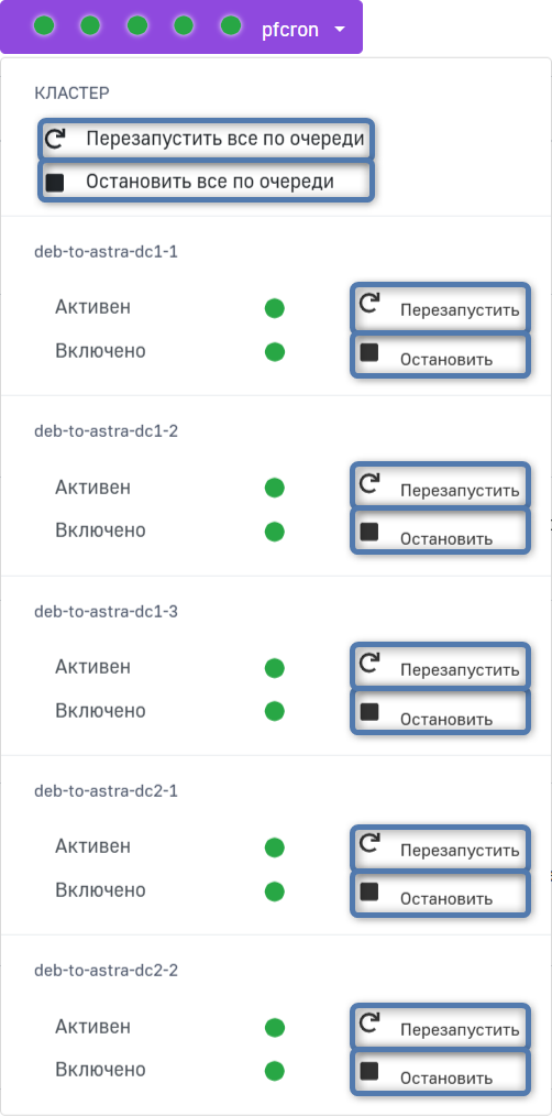 Чтобы поочередно перезапустить службу на всех узлах, нажмите на поле