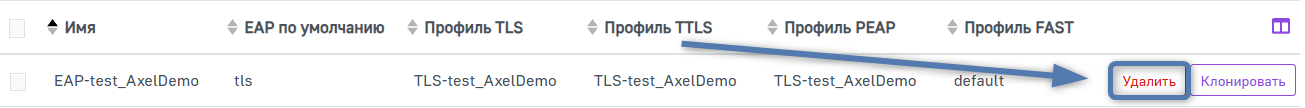 Также в режиме редактирования профиля EAP вы можете в конце страницы нажать кнопку Клонировать. После этого подтвердите удаление.
