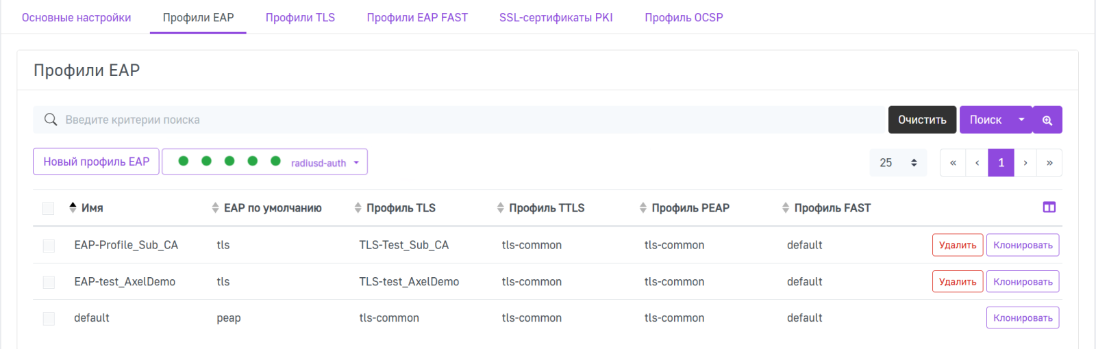 Также в режиме редактирования профиля EAP вы можете в конце страницы нажать кнопку Клонировать.